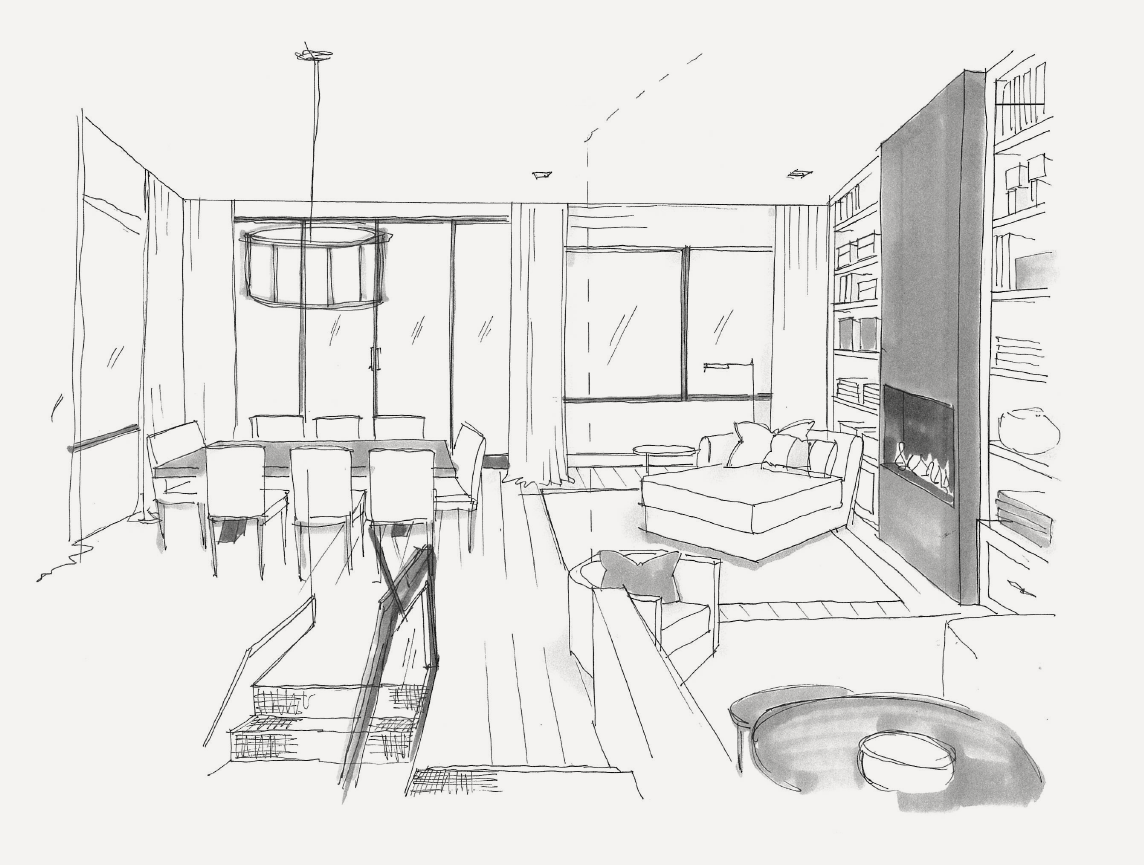 Et stramt og funksjonelt uttrykk i alle detaljer, med rette linjer, betong og tre.