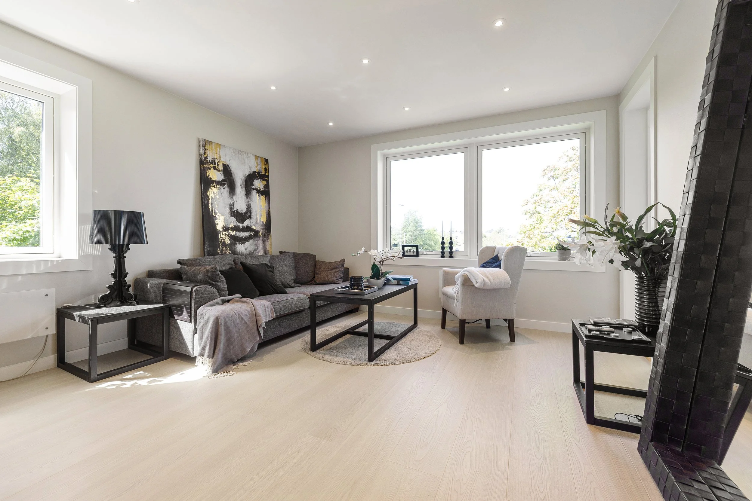 Otto Sogns Vei 11 preges av klassisk hvitt, sandfarger, grått og sort.